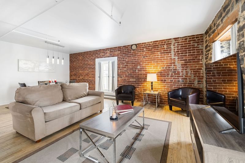 A feast for the senses, the sumptuous 2,200 square foot Royal Suite is located on Place de la FA0, a Quebec heritage site, and occupies the top floor of a colossal 19th century building, formerly known as the Bank of Commerce. Located in the building opposite the hotel, the Royal Suite features a luxurious bedroom, with a queen-size bed and a large marble or granite bathroom.